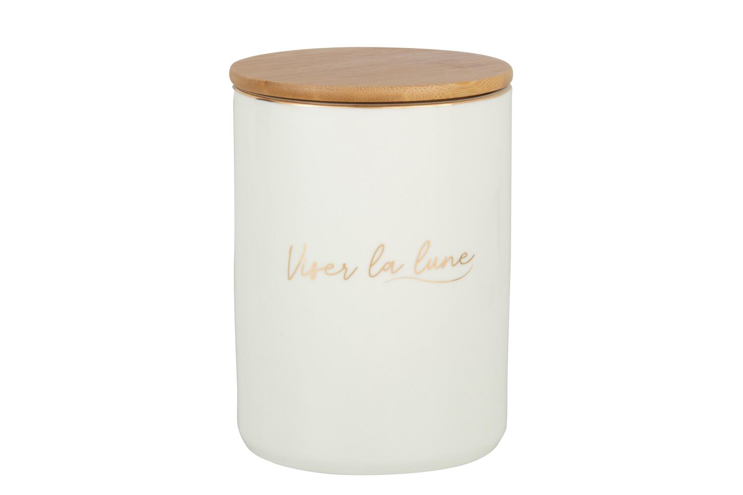 Joli pot hermétique en porcelaine blanche avec inscription "Viser La Lune" en doré qui embellira votre cuisine !
